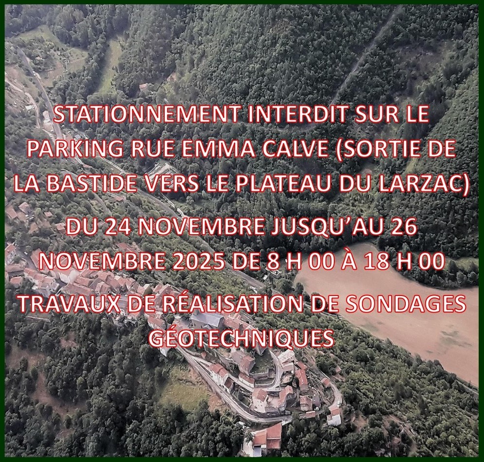 le stationnement de véhicules seront interdits sur le parking Rue Emma Calvé